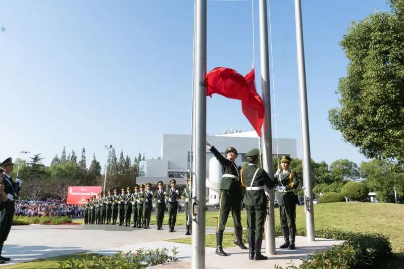 今天清晨,上海交通大学在校园内举行国庆升旗仪式。黄洁仪摄