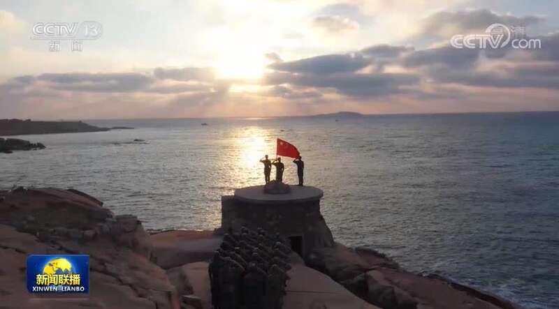 驻守在福建平潭岛上的东部战区陆军某海防旅官兵,将五星红旗高高升起在东海深处;在空军航空兵某师营区,官兵们面对国旗庄严敬礼。