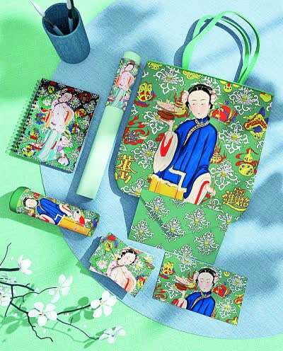 “中国传统工艺振兴主题设计展”上,天津杨柳青年画老店“义成永”展示的年画新作。