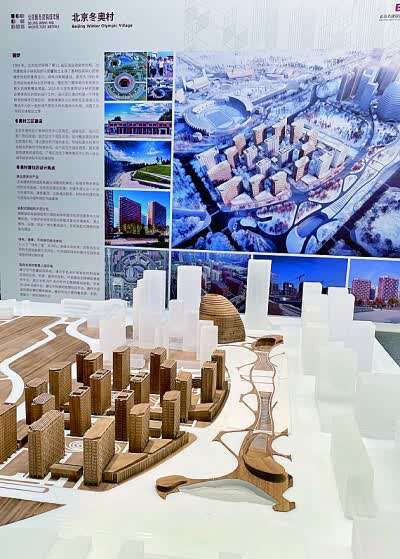 以“未来·家园”为主题的北京城市建筑双年展上的北京冬奥村设计模型。