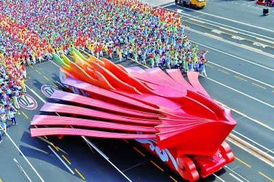 庆祝新中国成立70周年群众游行活动上的“中华儿女”方阵彩车设计。