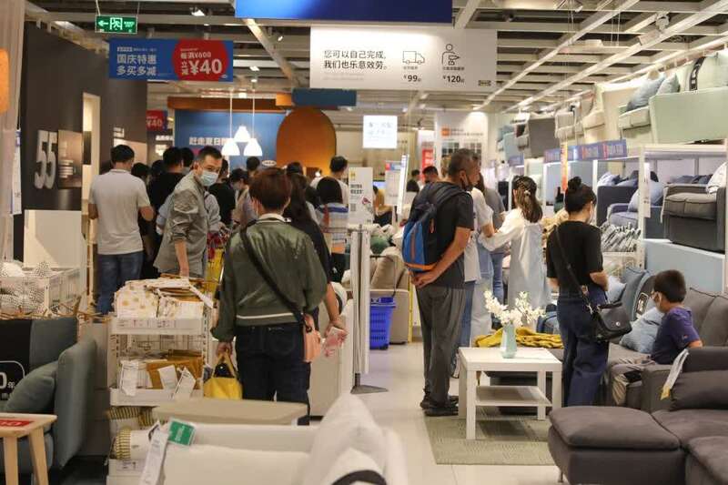 记者看到,服装区也已经完成了换季,帽衫、羽绒服等全部登场,李维斯、添柏岚等品牌还推出了超低折扣,吸引了很多市民选购。王祥兵告诉记者,由于外地疫情的原因,市民的出游意愿比较低,更多人选择了居家过节,今年国庆假期的整体销量比平日增长了50%,几乎赶上了春节的销售量。