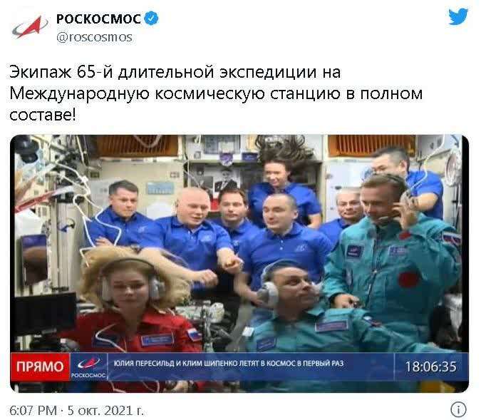 莫斯科时间10月5日18时许(北京时间10月5日23时许),国际空间站舱门打开,在国际空间站第66考察组成员俄罗斯宇航员安东·什卡普列罗夫的带领下,俄罗斯电影导演克利姆·希彭科和演员尤利娅·佩列西尔德顺利进入空间站。