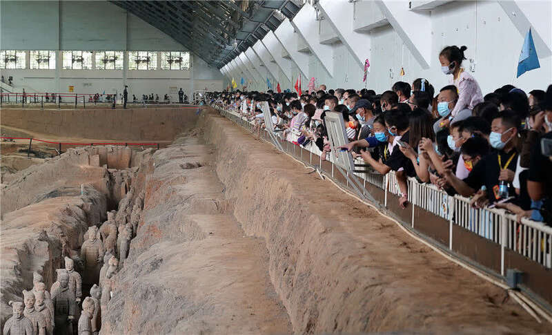 10月2日,游客在陕西西安秦始皇兵马俑博物馆参观。新华社记者 刘潇 摄