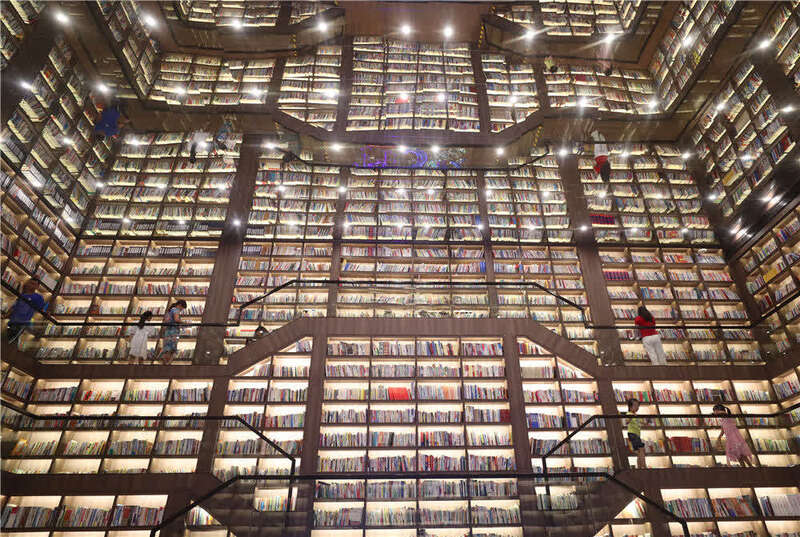 10月3日,市民在湖南省邵阳市松坡图书馆桃花源分馆里阅读。新华社发(曹正平 摄)