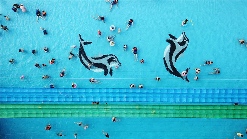 10月2日,游客在湖南长沙世界之窗水上乐园游玩(无人机照片)。新华社记者 陈振海 摄