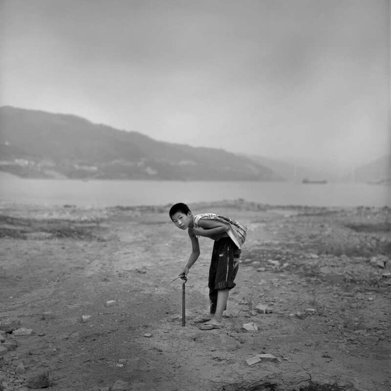 奉节的江边,这个小孩拿着钩子在捡一些铁片铁丝和废弃的东西去卖。他看了我一眼,不是很高兴,但也不是不高兴,就是生活的不容易造成他固有的那种情绪。
