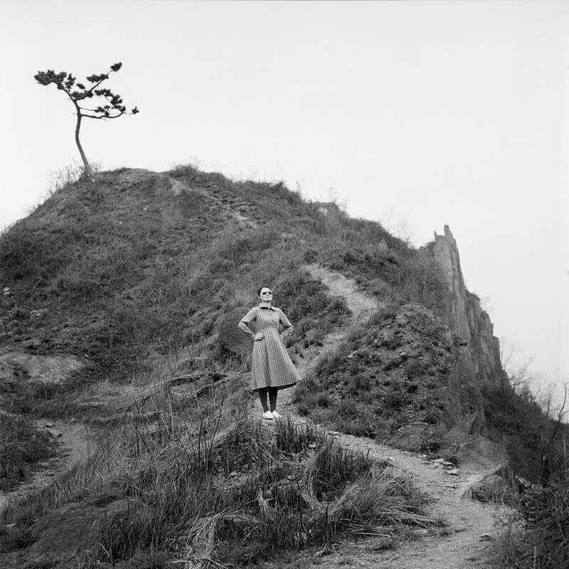 《昨天堂》中照片的“图说”以最该要的文字标注“其画面以外的信息”,采访中,严明告诉澎湃新闻记者,凡是画面中有的,图说里都不必再提及,他提到一个最让他难以接受的例子:一张照片的图说写作“站在纺织机前的女工”,而这是这幅照片中最一目了然的内容。“绝不要浪费一个表达的机会。”严明认真地建议。《昨天堂》中,严明大部分的文字解说都只点明拍的是什么和拍摄的地点,如“送子殿,项城”“三等舱,巫山”,有时也有一些微妙的揶揄,如下面这幅作品被命名为“赵佳月在羊山,绍兴”,这些出现在文字解读中的名字总被读者认为似乎有特别的意义,但其实不必拘泥,比如这件作品中,我们不需要知道赵佳月是谁,而是可以关注她昂首挺胸的姿态和这种姿势背后隐喻的文化烙印以及一种姿态的惯性。