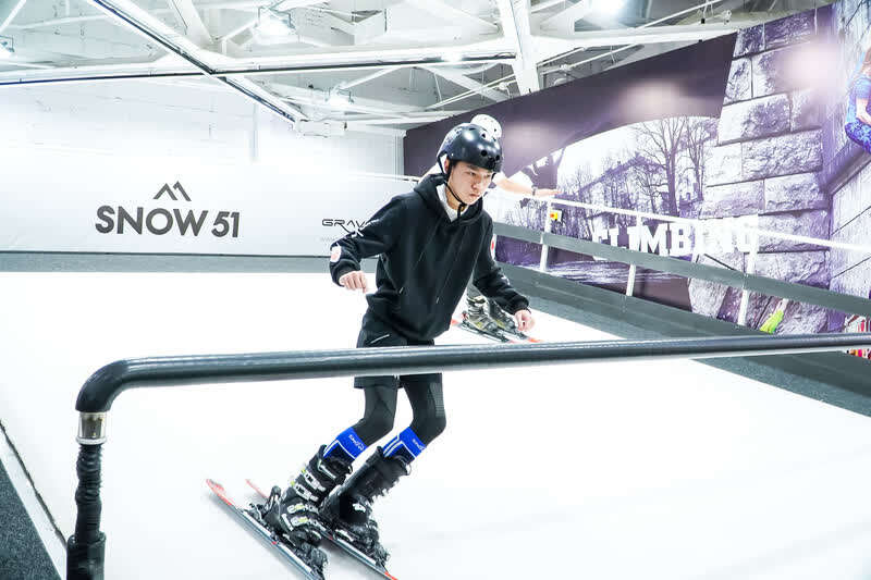 与一家奥利地专业滑雪培训学校合作的“SNOW51”,打造的是一站式城市滑雪空间。目前在上海开设10家门店,主要设置高山滑雪模拟机训练。在TX淮海店,SNOW51将餐饮、潮牌、滑雪集合为一,“我们倡导把滑雪变成一种生活方式。”SNOW51商务拓展总监杨晏介绍道,“你可以和朋友一起相约来这里滑雪,享用美食,在忙碌的生活中放松一下。”