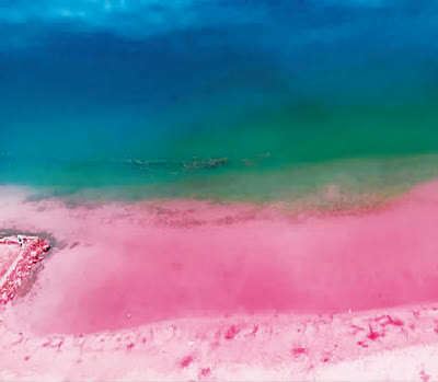 同一“网红”地的不同效果。图为网上加了滤镜的粉红沙滩。图片来自网络
