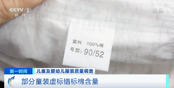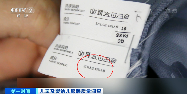 经过最后的定量检测,发现总共26批次不合格产品中,因为纤维成分含量不合格的就占到将近一半,达到了12批次。记者了解到,除了虚标错标棉含量,标称的纤维百分比超出标准远差范围,还有的企业因为标注了不规范的名称而不合格。记者看到这些儿童服装的成分标签上,有的标注天丝,有的标注人丝、人棉。检测工程师告诉记者,其实这些都是化学纤维。