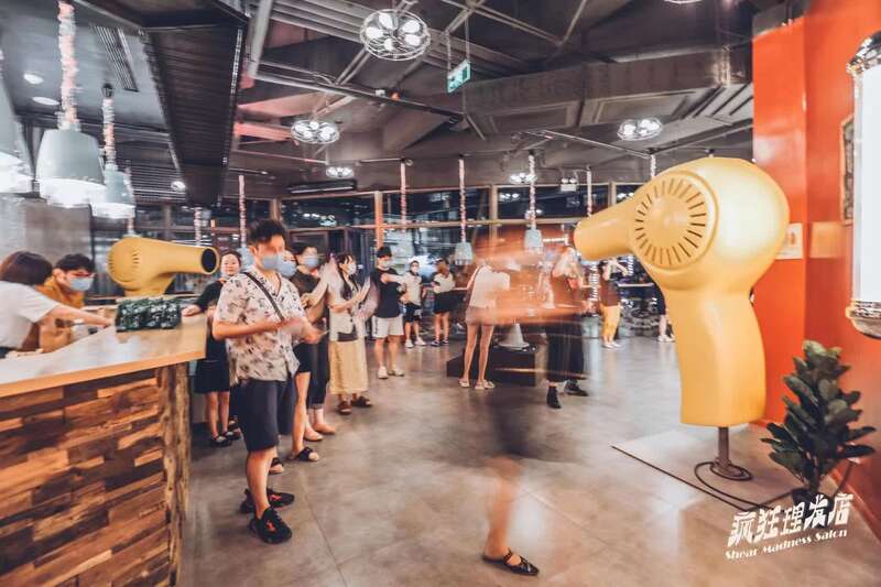 “全球首个喜剪吹沉浸剧场”,“这里的tony不剪头 但可能是凶手”,最近一个月,如果去到上海瑞虹天地月亮湾5楼,会发现一个全新开张的“疯狂理发店”,跳跃的色彩,时尚的装修,门口的理发椅和巨型吹风机分外醒目。不过,“理发店”基本只在晚上“开张”,这是上海开心麻花刚刚推出的沉浸式小剧场喜剧《疯狂理发店》,一个融合了互动喜剧、悬疑探案、沉浸式乃至剧本杀多种元素的新型演出形态。