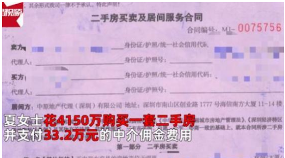 近日,有媒体报道了深圳一位购房者夏女士在2020年底以4150万元的成交价购买了一套房产后,从前业主处得知房源挂牌价是3800万元,前业主实际收了3900万元。夏女士由此质疑中介从中赚取差价,要求中介公司道歉并返还佣金等。