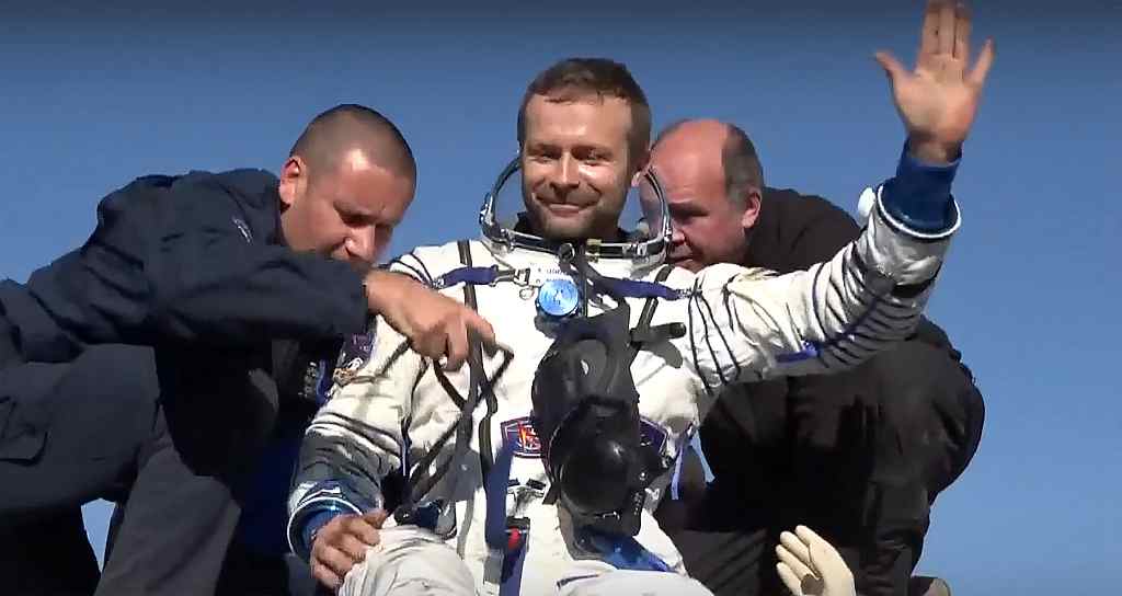 当地时间2021年10月17日,哈萨克斯坦,搭载俄罗斯一名宇航员和两名电影工作者的俄“联盟”号载人飞船17日返回地球。两名电影工作者在国际空间站停留了12天,拍摄一部太空题材电影。