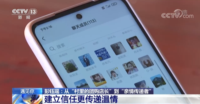 彭钰瑶自己拉了个微信群,把外出务工的乡邻都拉到群里。除了下单购物,她和大家也会在这里分享生活的点滴,聊上一两件趣事。相处久了,大家都很信任和喜欢这个这位嘴巴甜、性格好的姑娘,她也慢慢变成了子女和老人之间的“亲情传递者”。