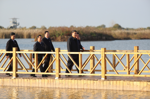 习近平总书记20日在山东省东营市考察黄河入海口。当天下午,他来到黄河入海口码头、黄河三角洲生态监测中心、黄河三角洲国家级自然保护区,实地察看黄河河道水情和黄河三角洲湿地生态环境,了解黄河流域生态保护和高质量发展等情况。