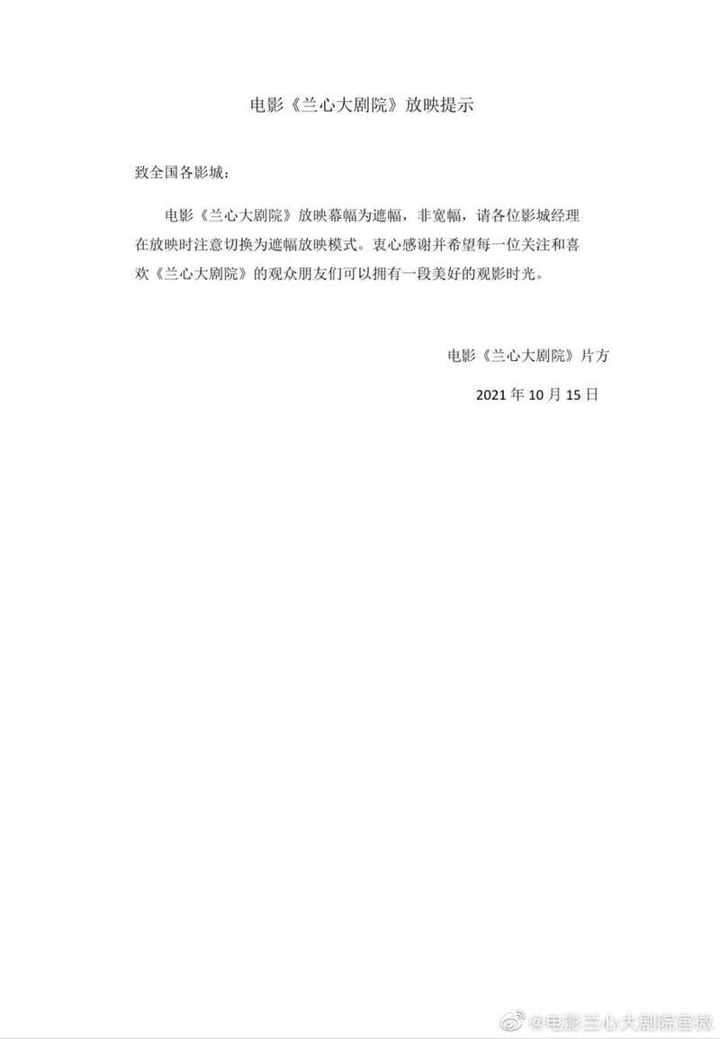 上海一家影院经理表示,由于该影院采用通用版本银幕,在放映《兰心大剧院》时没有发生画面显示不全情况,也不需要任何操作。他同时表示,日常放映遮幅电影时,理论上需要切除的白边一直都在,目前尚未有观众对此不满。