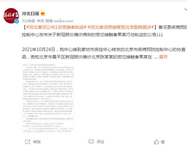 河北香河公布一名密接者行动轨迹,曾到北京宣武医院就诊