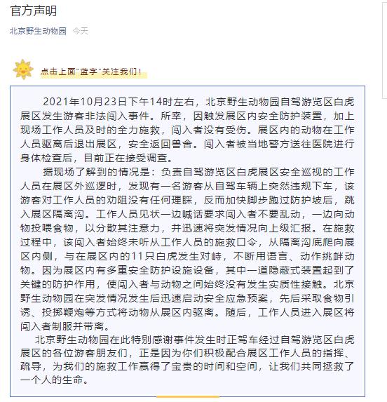 “游客闯入单挑11只白虎”“连老虎都蒙了”,这个周末,发生在北京野生动物园的一幕在朋友圈刷了屏。