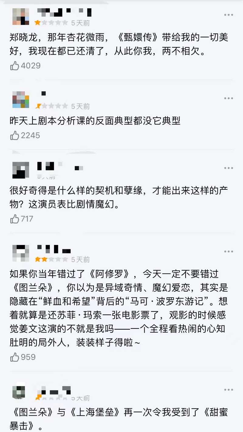 有网友将其与《阿修罗》和《上海堡垒》相提并论。还有网友以“甄嬛体”调侃道:“郑晓龙,那年杏花微雨,《甄嬛传》带给我的一切美好,我现在都已还清了,从此你我,两不相欠。”