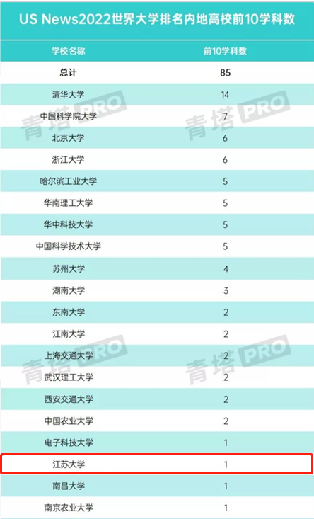 排名显示,江苏大学共有21个学科上榜,较去年增加10个。其中,化学工程首次跻身世界前10,全球前十强上榜学科数并列内地高校第17位;食品科学与技术首次进入世界前50,全球前五十强上榜学科数并列内地高校第44位;机械工程、能源和燃料、农业科学等6个学科进入世界前100,全球前百强上榜学科数并列内地高校第34位。