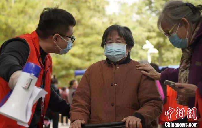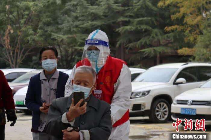 图为西北师范大学防疫应急志愿服务队志愿者帮助老人做核酸检测。 西北师范大学供图