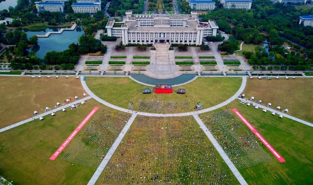 10月9日下午,东南大学党委书记左惟在九龙湖校区图书馆大草坪,为1万余名2021级新生讲授了题为“启航新征程,勇担新使命”的思政课。