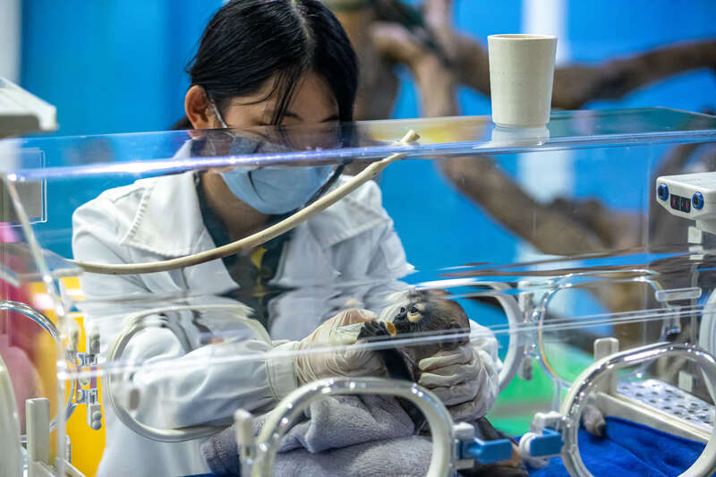 保育专家陈思明介绍,保育团队在黑腿白臀叶猴宝宝身上下了不少功夫。由于黑腿白臀叶猴幼崽存活率较低,而且国内相关研究和成功案例也很少,为了保障猴宝宝存活,保育员们借鉴了食性相近的川金丝猴的育幼经验,针对叶猴特殊的生理结构和消化方式,摸索出了一条科学保育的道路。