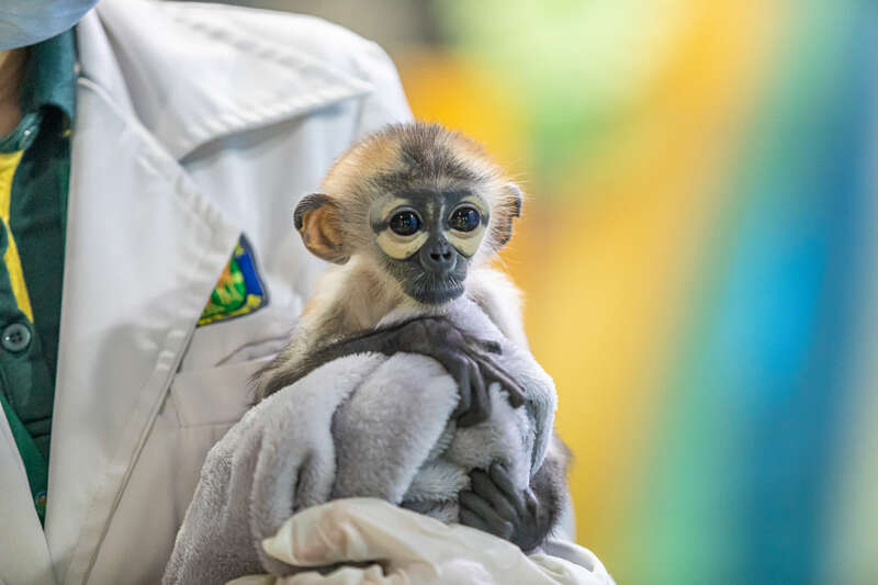 国内首例人工育幼黑腿白臀叶猴在穗亮相
