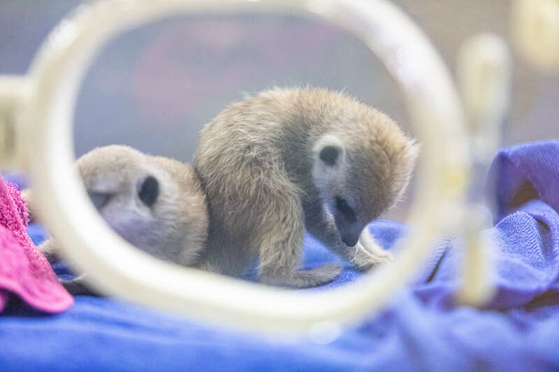 在保育箱中的细尾獴宝宝。