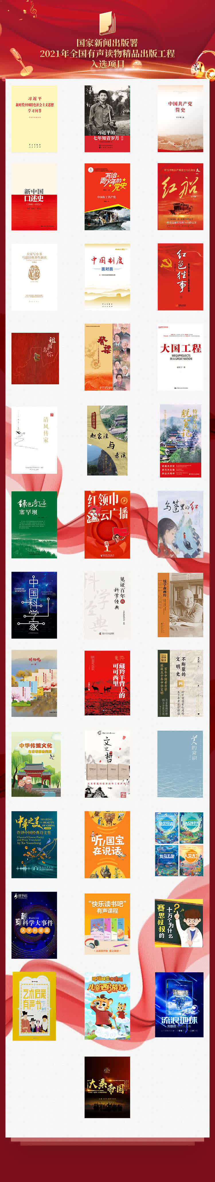 中国青年报客户端讯(中青报·中青网记者 蒋肖斌)国家新闻出版署“2021年全国有声读物精品出版工程”入选项目近日发布,《习近平新时代中国特色社会主义思想学习问答(有声版)》等37个项目入选。