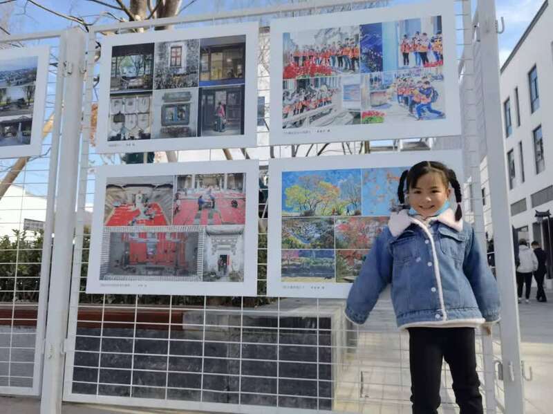 图为一位女孩在展览前拍照留念