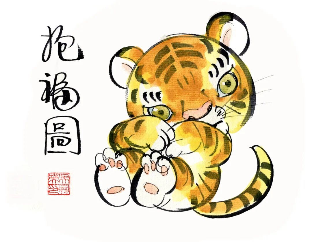 卡通风格小老虎“抱抱虎”设计草图