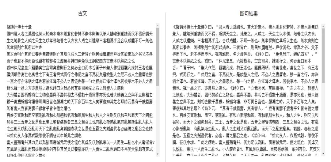 2.智能标点:借助计算机学习技术,智能标点以数亿字的已标点古籍为训练集,可根据特定算法为古籍文本自动标注现代中文标点符号。平台采用先进的机器古籍标点技术,标点准确率达到90%以上