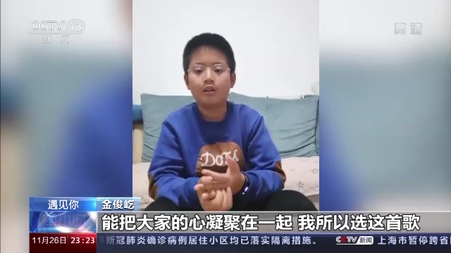 金俊屹:在疫情面前,国家是我们坚强的后盾,我想歌颂一下祖国,所以我唱这首歌。(唱第二首歌的时候)是特别激动,就是全小区的人都能跟着我一起唱,感觉(我的歌声)是给大家带来了一些力量。