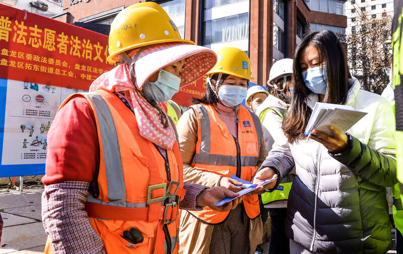 中建二局云南分公司团委书记赵晨介绍,多年来,公司坚持开展法律公益活动进工地,积极引导建筑工人树立法治意识,采用合法的方式维护自身利益。