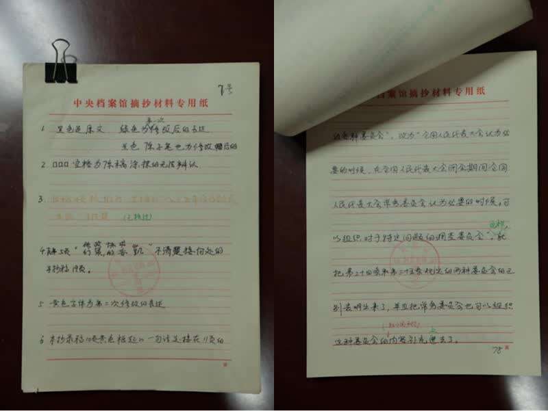 为了讲好新中国第一部宪法的故事,韩大元和他的学生们花了相当多的时间和精力来收集文献资料。在过去,这些史料的收集整理并不能通过手机或其他电子设备进行留存,所以他们每天都要去中央档案馆逐字抄写档案,为了保证准确性,还需要让工作人员核对并加盖档案馆的公章。“目的就是想使这样一部伟大宪法的制定背景、制定过程,特别是‘五四宪法’背后生动的故事,让年轻人能够了解。”而今,他已将自己的研究成果捐赠给了“五四宪法”历史资料陈列馆。