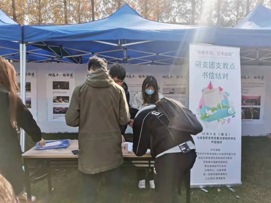 1999年,复旦大学响应国家号召,召集第一支研究生支教队伍,至今20余年接力不断。复旦大学研究生支教团坚持“教学、家访、资助、文化、宣传”五位一体的服务理念,用自己的力量改写当地教育面貌。如今,第23届研支团队员正在宁夏西吉、贵州息烽、新疆拜城、云南永平、四川喜德与青海玉树续写“复旦第七教学楼”的故事。活动现场的书信活动吸引了众多同学,文字将同学们的热情传递到西部。更有学校教职员工现场提出结对帮扶支教点家庭经济困难学生。