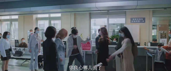 一群人吵吵闹闹时,工作人员来了句“吵架可以,但请保持安全距离。”撒狗血的片段及时止住,又跟疫情下的生活紧密关联,节奏轻松活泼。