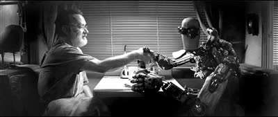 片中有个小细节,曾有一个螺丝掉进了杰夫的脑壳里,似乎是“脑子进水了”的隐喻,但后来当他把螺丝拍出来时,仿佛就一下子“开了窍”,有了真正的独立思考能力,实现了人工智能的一次飞跃。不管是机器人、克隆人、生化人、复制人……这些“人造生命”最难的就是情感系统的自发和自适应,这也就是为什么《银翼杀手》里,罗伊的那段遗言诗如此感人的原因。