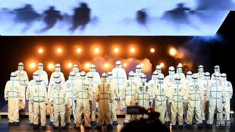 △2021年10月,致敬抗疫英雄的话剧《逆行》在武汉上演。(图/视觉中国)