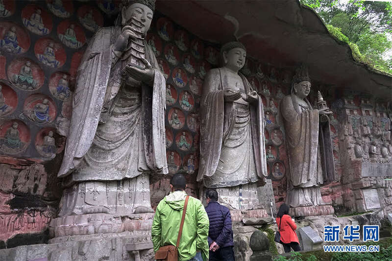 游客在大足石刻景区内参观。新华网 韩梦霖 摄