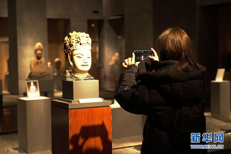 游客在大足石刻博物馆内拍照留影。新华网 韩梦霖 摄