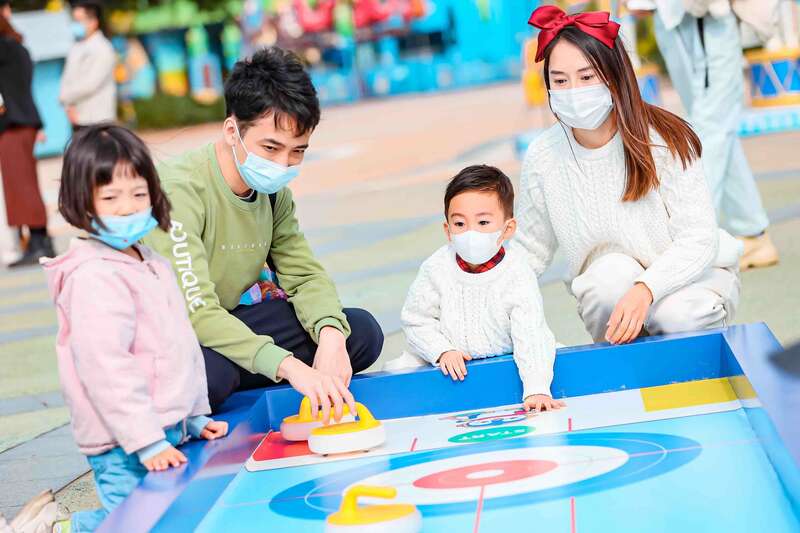 为了迎接即将到来的2022年北京冬奥会,珠海长隆全新打造了大型场景童乐极地,冰壶运动、以及VR极地运动滑道等游乐设施,欧陆小屋配以玩具风格的童乐街,让游客领略岭南的“极地风光”。