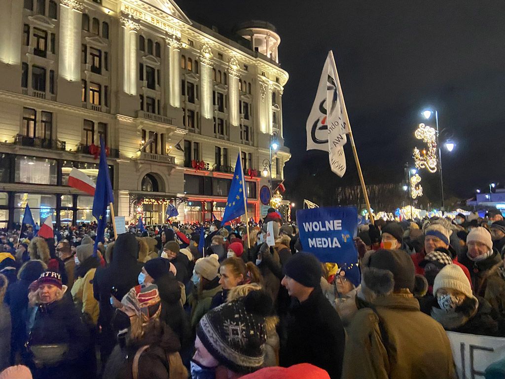 据路透社报道,12月19日,波兰全国范围内爆发示威活动,数千名示威者聚集在波兰总统府外,要求波兰总统驳回法案。