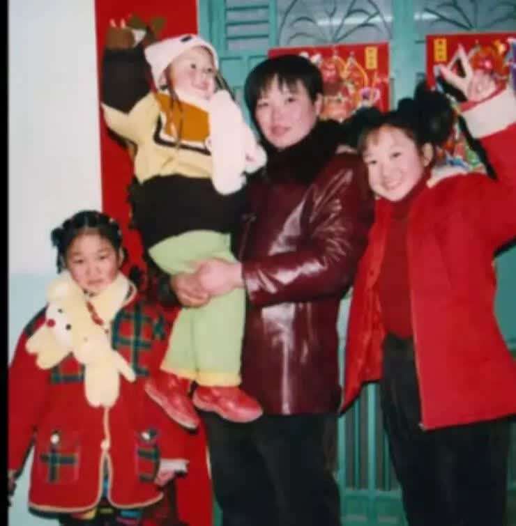 露露失联前和家人的合影。右一为露露、右二为王芳,抱着小女儿。左一为小燕。