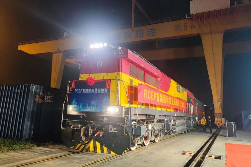 1月1日,RCEP生效后首趟国际货运班列从广西南宁国际铁路港开出。(中国铁路南宁局集团有限公司 供图)