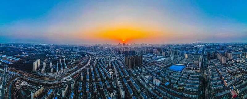 航拍沈阳2022年第一缕日出。新华网 夏铭阳 摄