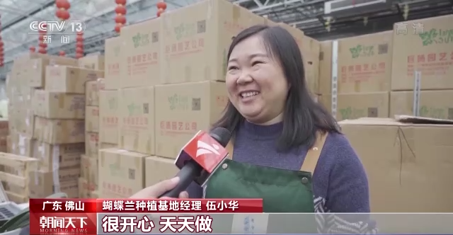 蝴蝶兰种植基地经理 伍小华:都是排队出货的,很开心,天天做,自己的花不够,我还要去外面调货。