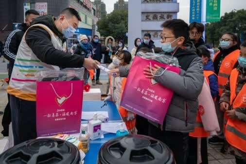 中国青年报客户端讯(夏韵 中青报·中青网记者 李润文)2022年元旦,江苏省“一杯姜茶·温暖南京”江宁区小小志愿者致敬“城市平凡英雄”新年送温暖活动在南京市江宁区举行。